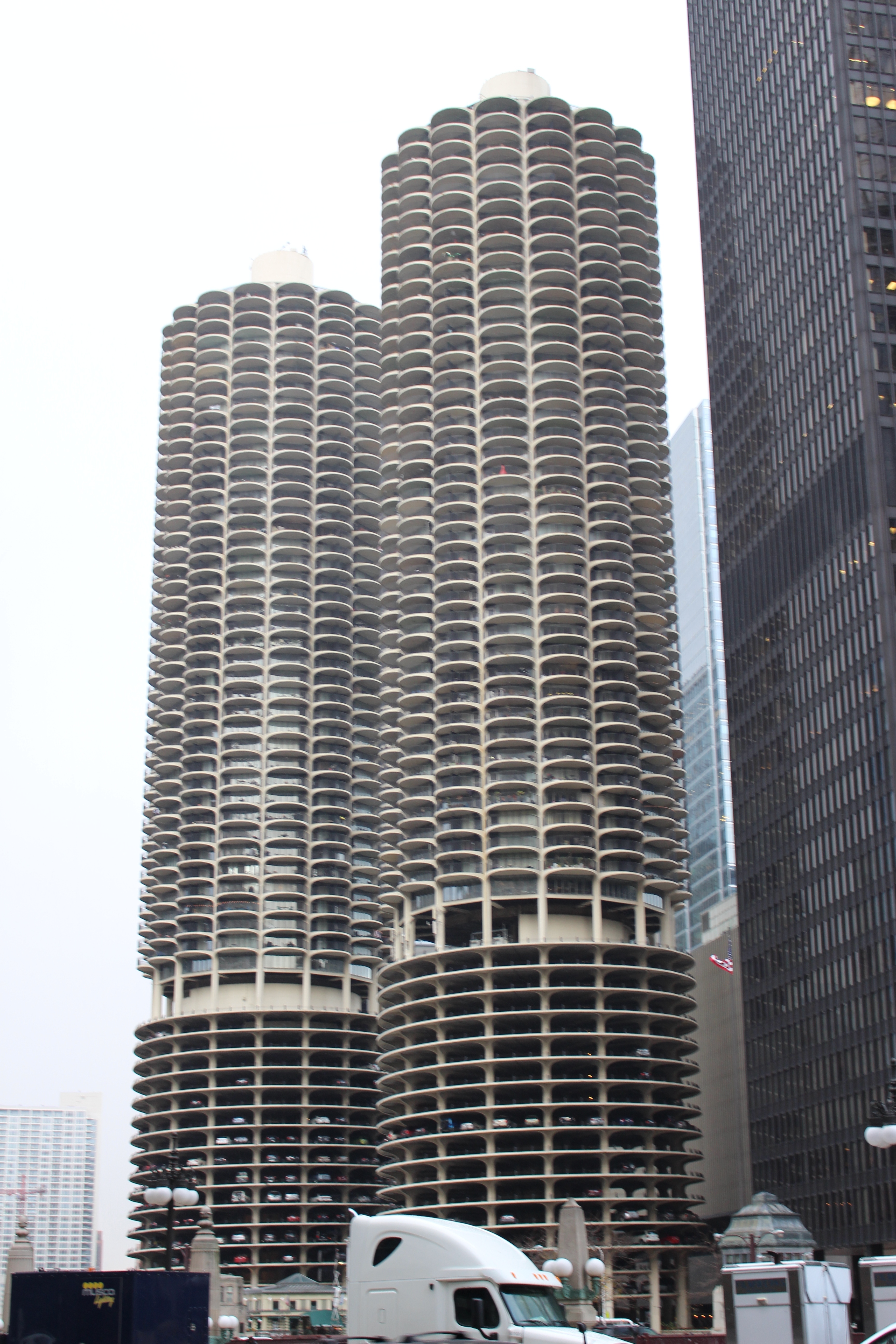 On Sunday November 2, 2014, Nik Wallenda walked a tightrope between these two high rise buildings and over the Chicago River.